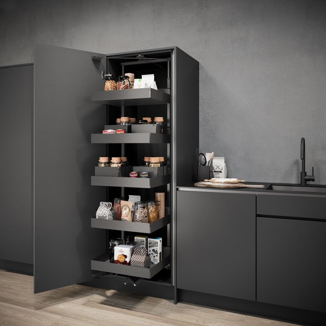 A magas elem nem csak a szárazélelmiszer vagy a konyhai gépek otthona lehet. Ide rejtőzhet a beépített hűtőd vagy fagyasztód is, ami egységes, letisztult frontképet eredményez.